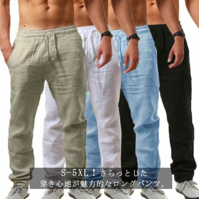 メンズ リネンパンツ カジュアルパンツ 綿麻 ワイドパンツ ロングパンツメンズファッション ズボン パンツ