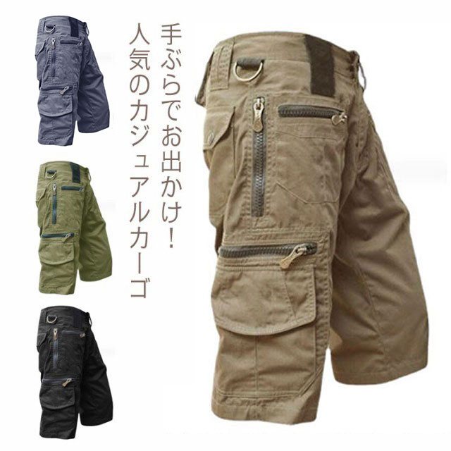 作業着 ショートパンツ 膝丈 メンズ 綿 大きいサイズ カーゴパンツ 七分丈 チノパン クロップド スリム 半端丈 ミリタリー