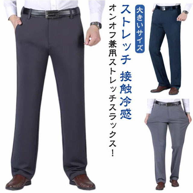 スラックス 春 接触冷感 秋 ストレッチ グレー 裾上げ済み ウォッシャブル 夏 美脚 細身 黒 メンズ ネイビー スリム