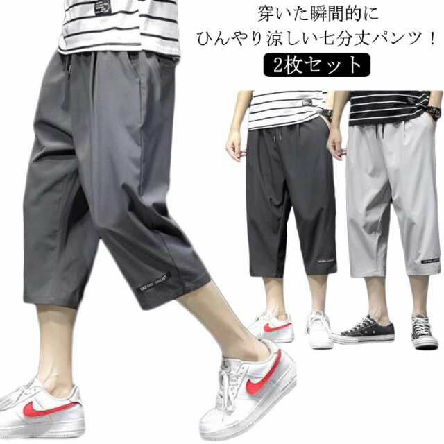 7分丈 パンツ メンズ クロップドパンツ 接触冷感 チノパン イージーパンツ 冷感 涼感 ワイドパンツ ロングパンツ 涼しい カジュアルパンツ ゆるパンツ ウエストゴム