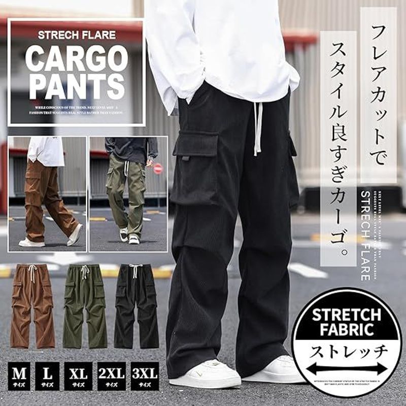 コーデュロイパンツ メンズ ズボン 伸びる カーゴパンツ フレア ワイドパンツ 秋服 ロングパンツ 無地 ボトムス イージーぱんつ かっこいい ずぼん オシャレ ストリート 秋 冬 春