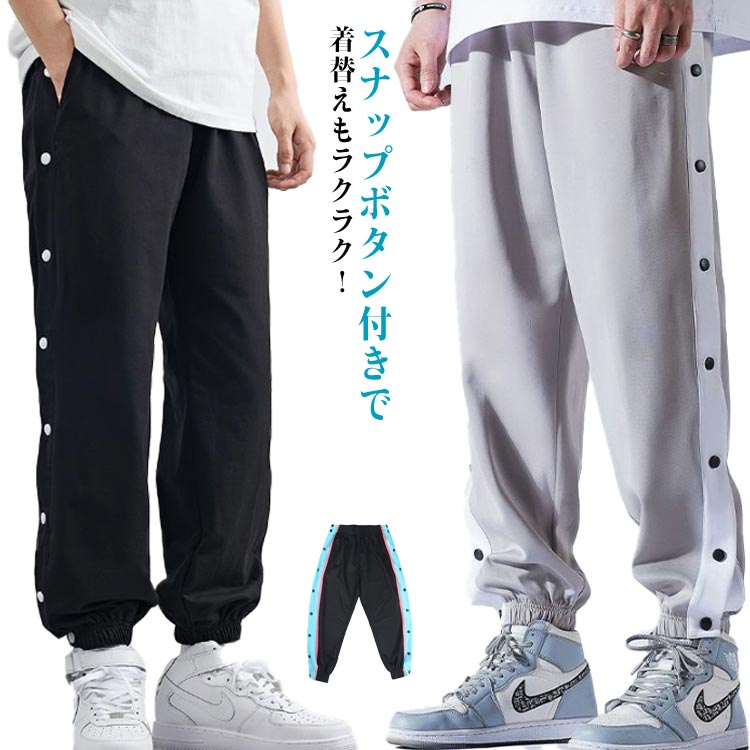 バスケパンツ 両脇ボタン全開 バスケットボールパンツ 裾ボタン 大人 バスパン サイドライン ジュニア レディース スナップボタン サイドボタン バスケパンツ ロングパンツ バスケットパンツ スナップ