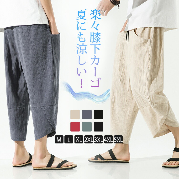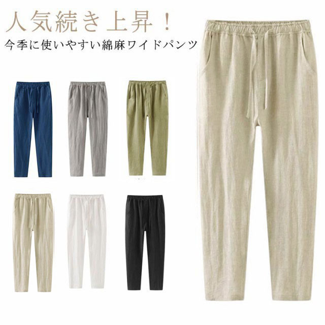 春夏パンツ リネン 綿 サイズ豊富 ビッグサイズ コンフォート シンプル 薄手 涼しい リラックス 9分丈