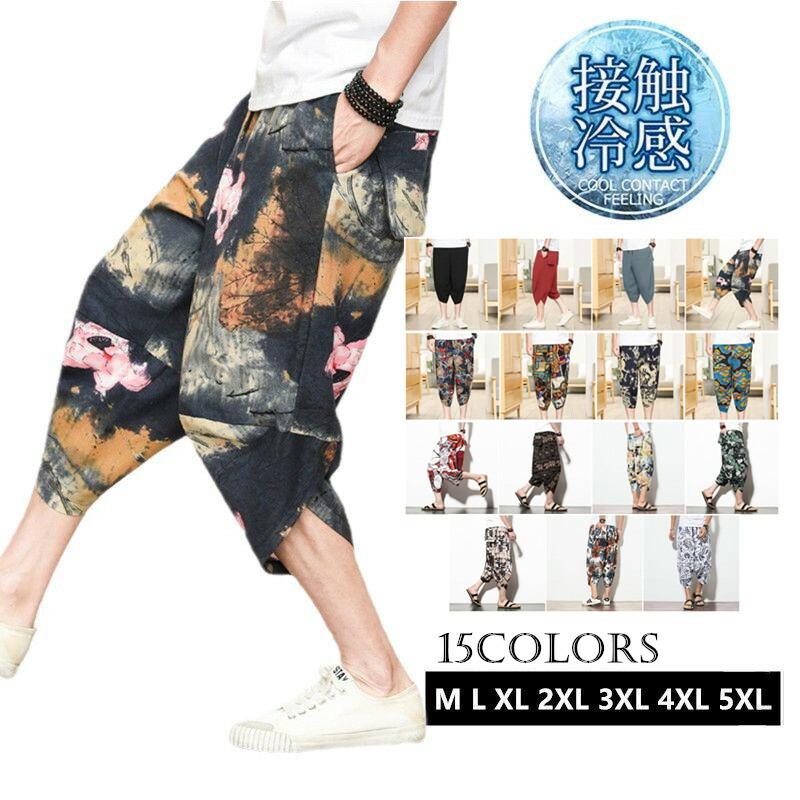 M~5XL 麻ワイドパンツ ロング丈 春夏 ウエストゴム 薄手メンズファッション ズボン パンツ