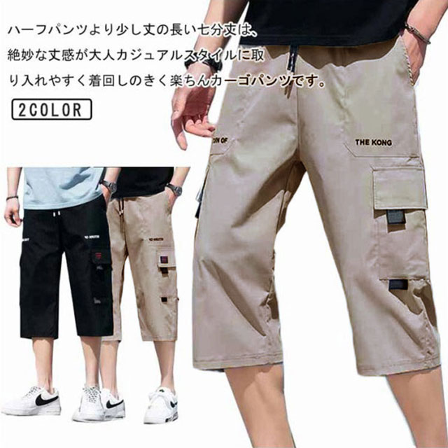 カーゴパンツ メンズ 7分丈 ハーフパンツ ひざ下 クロップドパンツ スポーツ 太め ゆったりメンズファッション ズボン パンツ