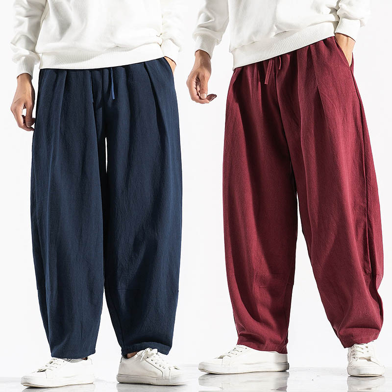 イージーパンツ 涼しい 綿麻 パンツ 人気 無地 ズボン ボトムス リラックスメンズファッション ズボン パンツ