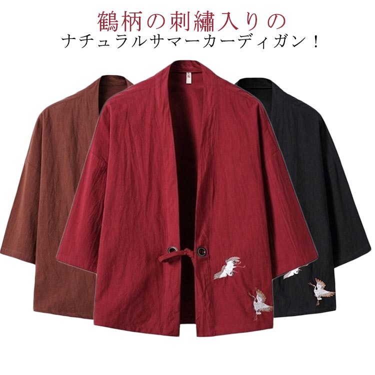 カーディガン サマー 半袖 浴衣風 和風 7分袖 ししゅう 和柄 羽織り リネン ナチュラル 薄手 甚平