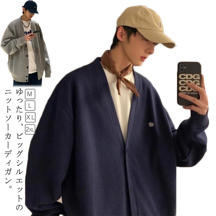 メンズ カーディガン ゆったり 無地 ノーカラー 長袖 スウェット ボタン vネック 前開き カジュアル トップス アウター 春秋 大きいサイズ