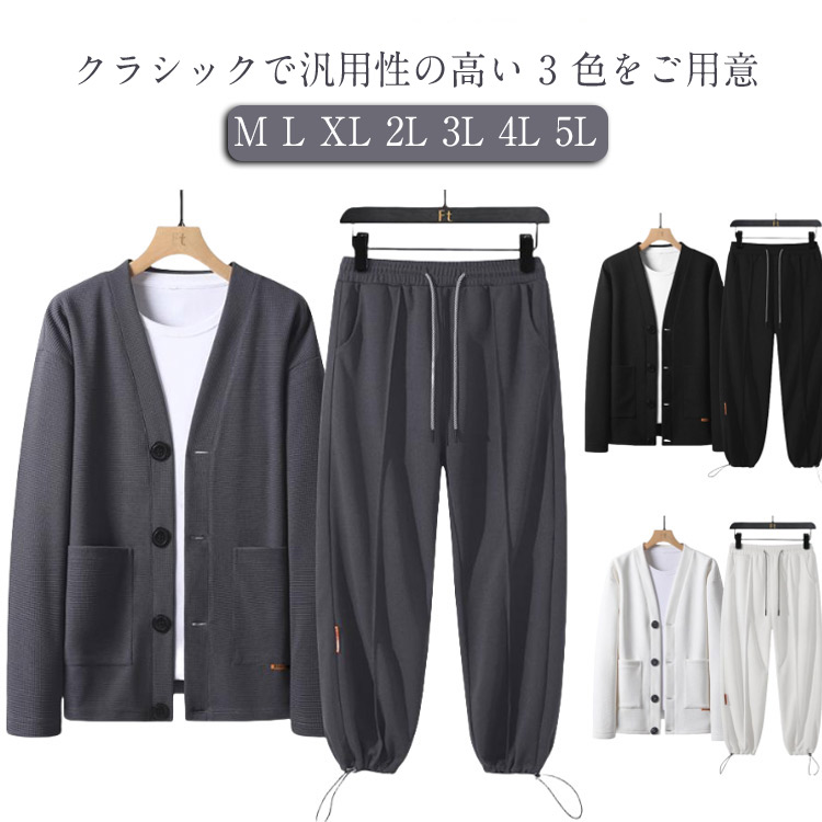 ノーカラージャケット&イージーテーパードパンツセットアップ カーディガン メンズ 長袖 パーカー 羽織り 無地 シンプル
