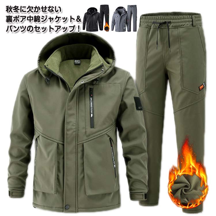 防寒着 裏ボア 上下セット アウトドア ジャンパー ミリタリー マウンテンジャケット ハイキング 運動着