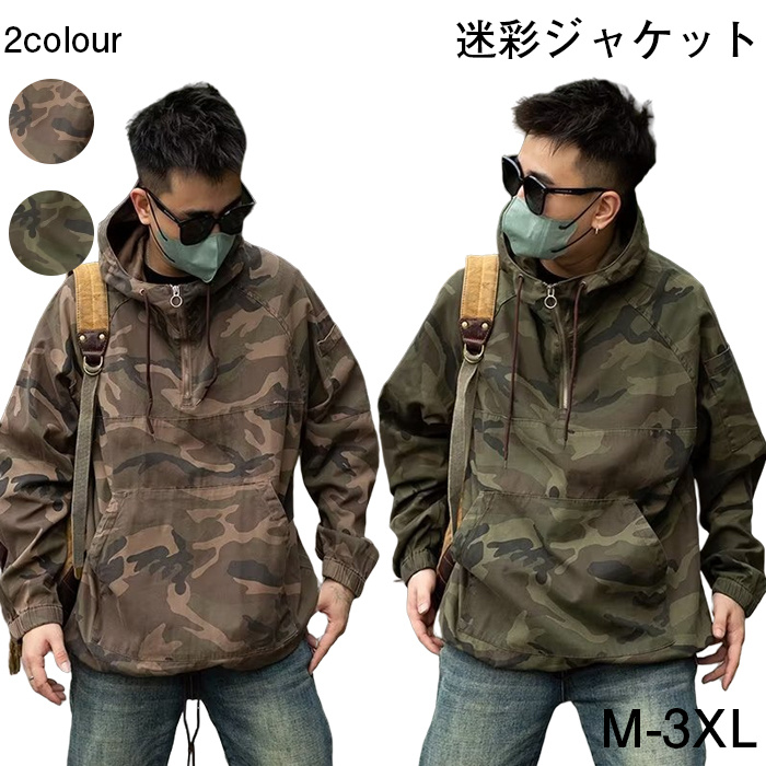 迷彩ジャケット 撥水加工 メンズ 迷彩 上着 プルオーバー 半ファスナー ポーチ付 アウトドア 作業 M-3XL