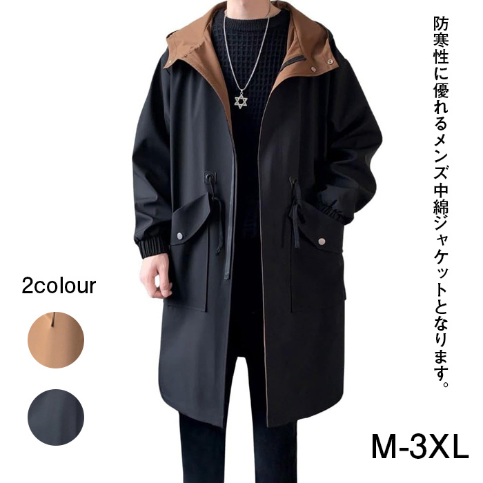 ベンチコート メンズ 冬服 中綿 防寒 防風 メルトンコート チェスターコート ウインドブレーカー オーバーサイズ ゆったり 無地 暖かい アウトドア フード付き ジャケット 秋冬春