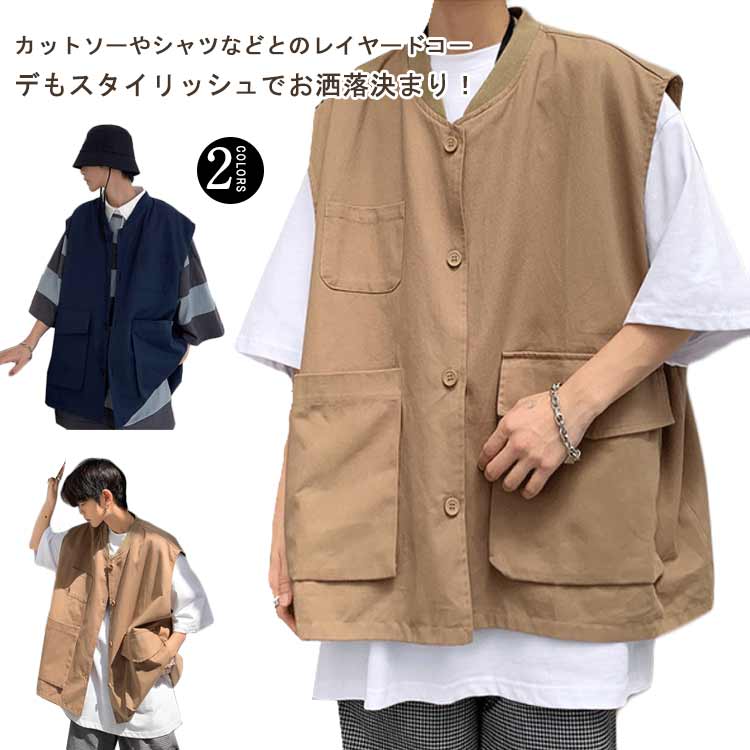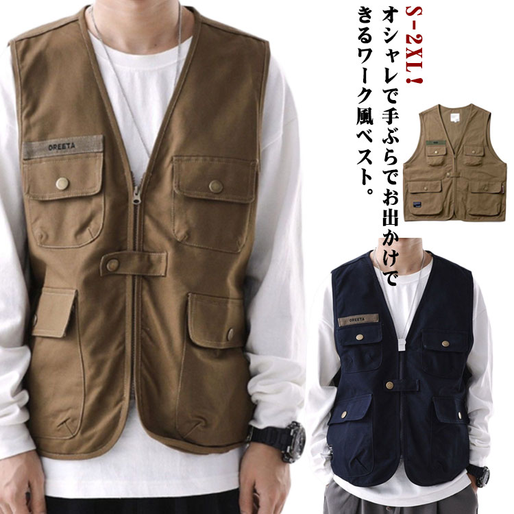 ベスト メンズ サマーベスト ワークベスト ポケット付き 春夏 カーゴベスト レトロ 作業着メンズファッション トップス ベスト ジレ