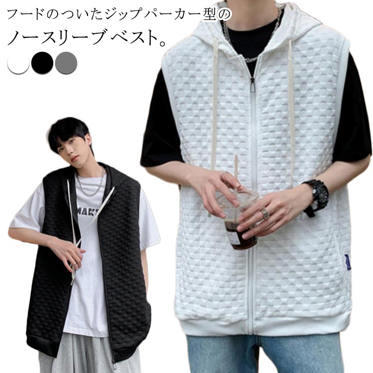 ベスト パーカー メンズ ノースリーブ フード付き 無地 シンプル スウェット トップス アウター かっこいい カジュアル スポーツ 春秋 きれいめ おしゃれ