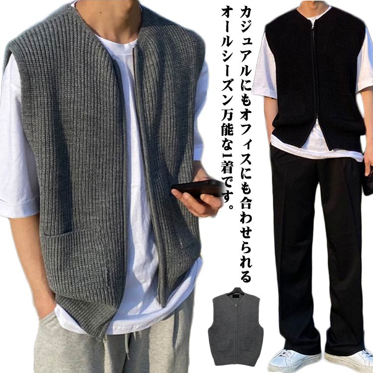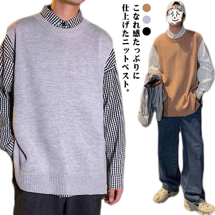 シンプルなのにお洒落に見えるニットベストメンズ ノースリーブ ニットベスト 韓国 ミドル丈 ビジネス カジュアル 洗える 家庭洗濯 秋冬