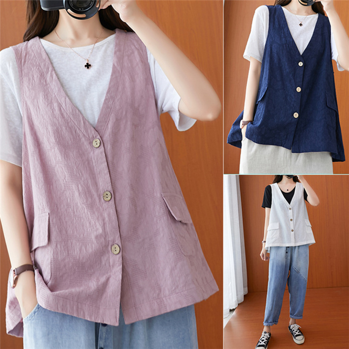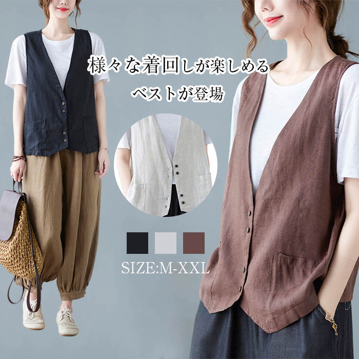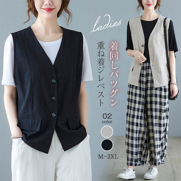ジレ レディース ベスト レディース 春夏 ベスト レディース 夏 ベスト レディース おしゃれ ベスト 夏ベスト 薄手 前開き トップス ゆったり コットン 重ね着
