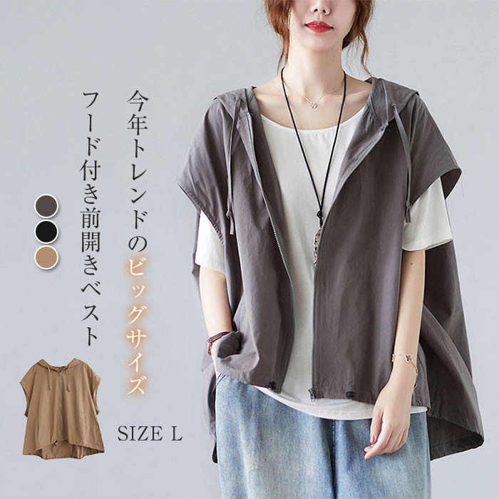 ジレ レディース ベスト ジレベスト 春 夏 秋 冬 ビッグシルエット フード付き ファスナー おしゃれ 前開き トップス ゆったり ゆる 大きいサイズ サマージャケット ノースリーブ