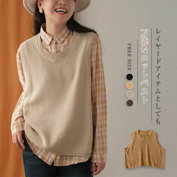 ニット ベスト ニットベスト レディース 春秋 ニット トップス ベスト ノースリーブ ショート丈 シンプル 無地 カジュアル レイヤード 重ね着 サマー ベスト