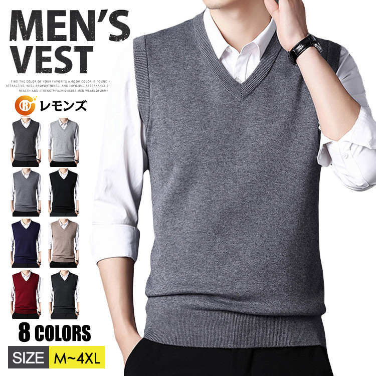 前開き ニットベスト インナー セーター ルームウェア Vネック カジュアルメンズファッション トップス ベスト ジレ