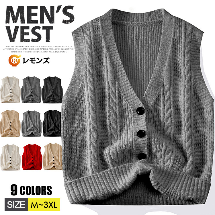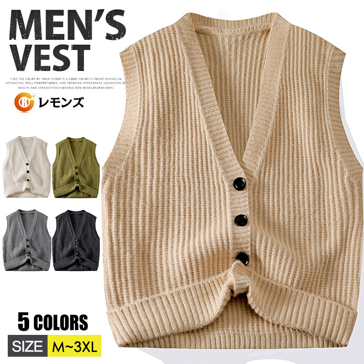 前開き ニットベスト インナー セーター ルームウェア ネック カジュアルメンズファッション トップス ベスト ジレ
