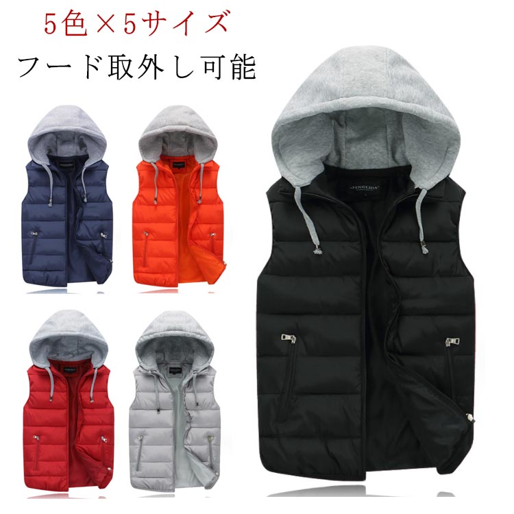 メンズ 中綿ベスト 冬 ベスト メンズ フード付き ノースリーブジャケット ベストジャケット レディース トップス 秋冬 開襟 ファッション ゆったり 暖かい 防寒 あったかい
