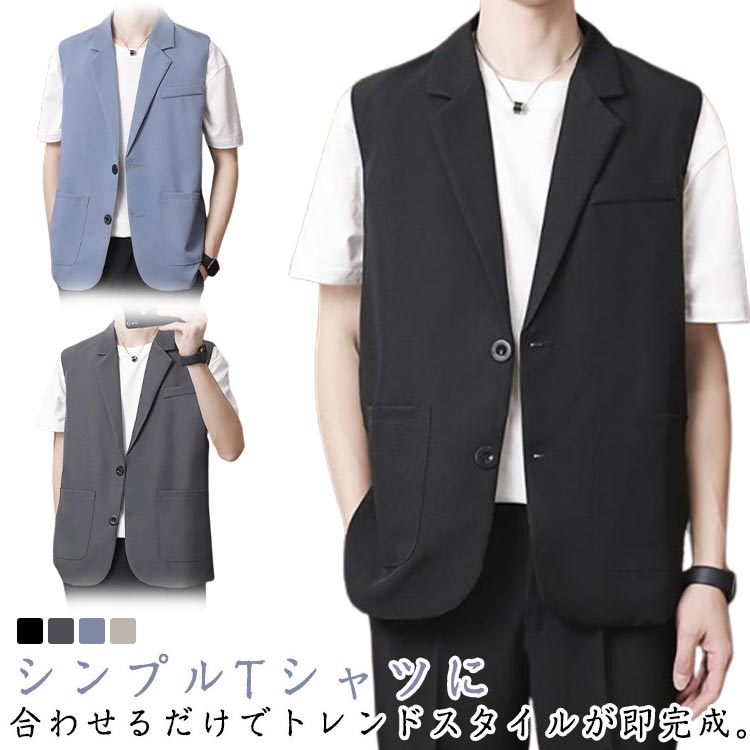 ベスト メンズ スーツベスト ジレ 春夏秋 カジュアルベスト メンズ 前開きメンズファッション トップス ベスト ジレ