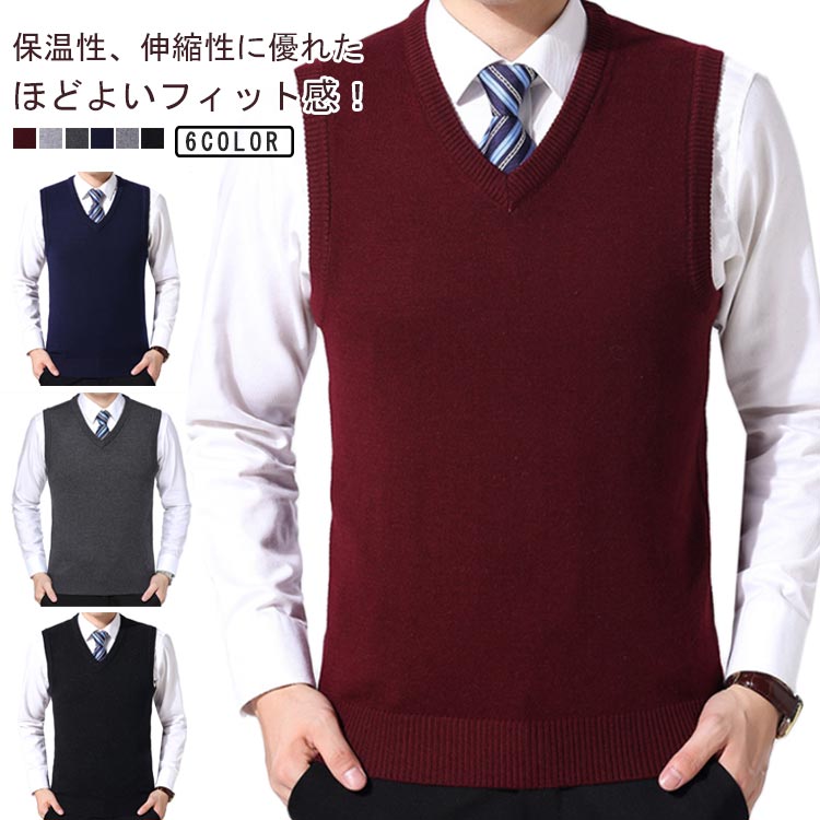 ニット ベスト メンズ ビジネス Vネック ニットベスト シンプル Vネックベスト ニットトップス レイヤード 重ね着 父 プレゼント 父の日 20代 30代 40代 50代
