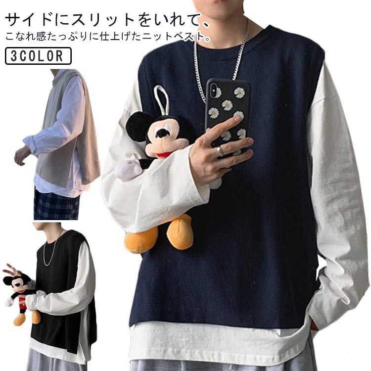 ニット ベスト メンズ ビジネス ネック ニットベスト シンプル ネックベスト ニットトップス レイヤード 重ね着 父 プレゼント 父の日 20代 30代 40代 50代