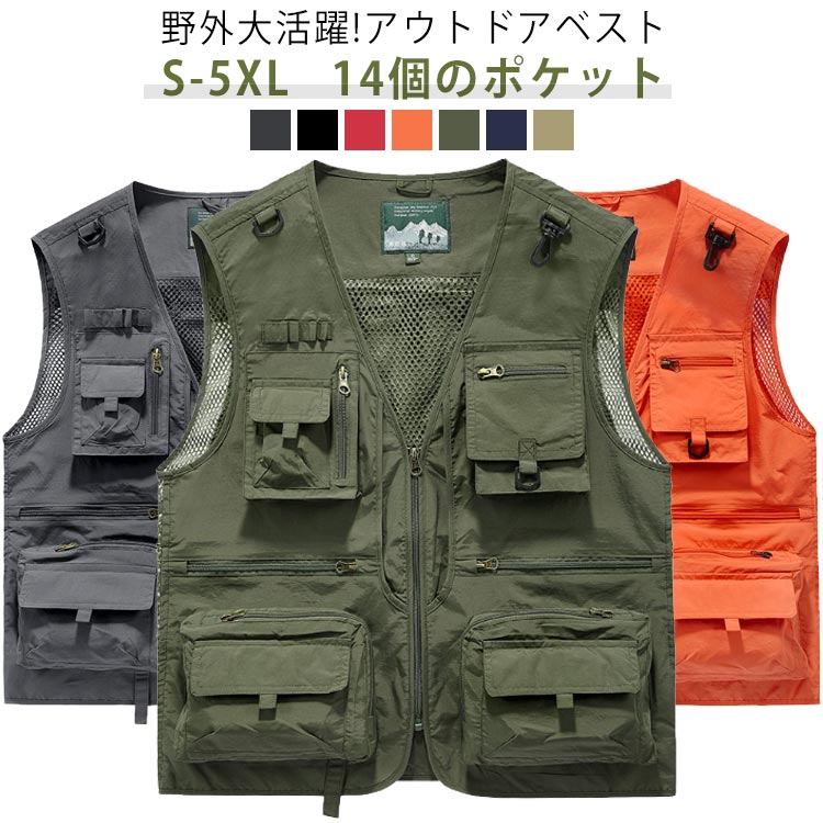 アウトドアベスト 農業 マルチベスト 作業用 多ポケットベスト 収納 多機能 ポケット 多機能ベスト 高耐久 ミリタリー 登山 ベスト チョッキ サマーベスト ポケット多い 涼しい キャンプ