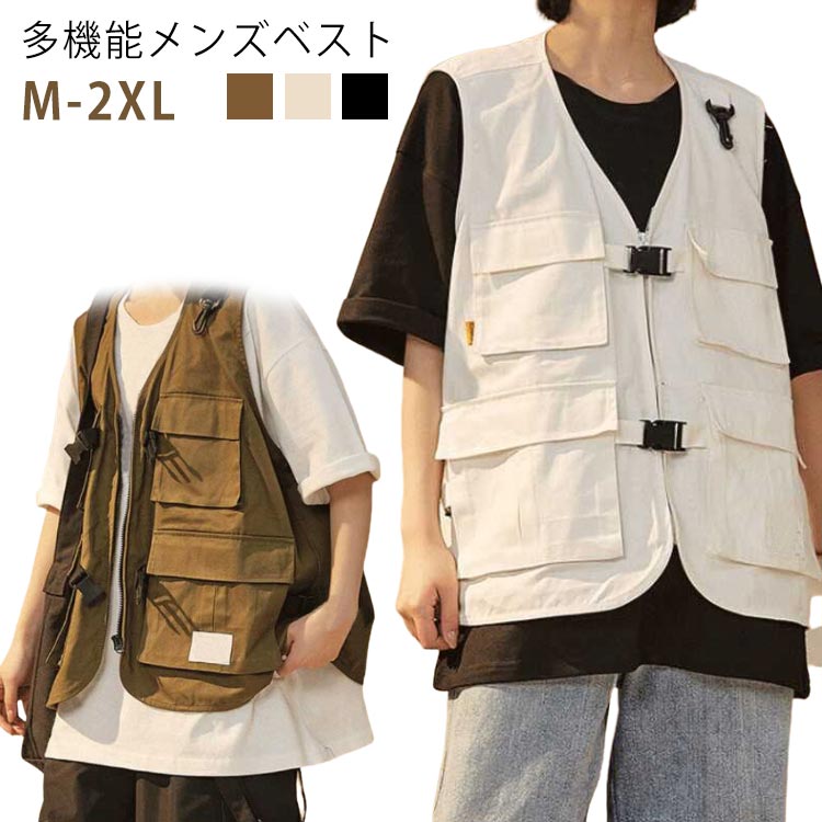 メンズ ベスト サマーベスト ワークベスト ポケット付き 春夏 ベスト カーゴベストメンズファッション トップス ベスト ジレ