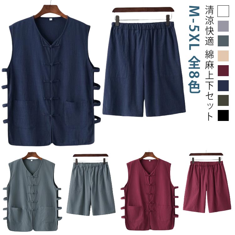 ベスト プレゼント ハーフパンツ 薄い 40代 メンズ 60代 麻 Vネック 綿 春夏 コットン リネン 中華風 清涼 秋服 夏服 春服 20代 30代 チョッキ 50代 ジレ 高齢者 父の日 敬老の