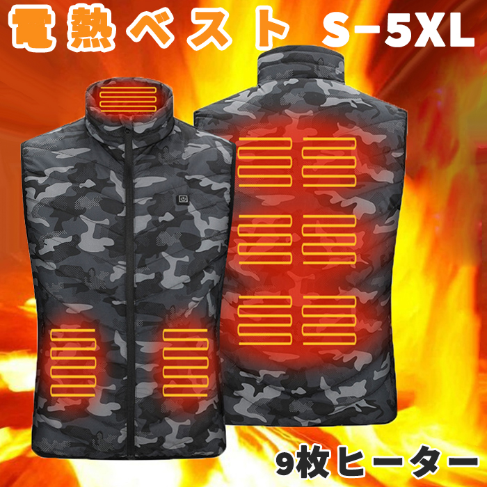 電熱ベスト 加熱ベスト 16箇所発熱 給電 ヒートジャケット 日本製繊維ヒーター 急速発熱 洗濯可 3段階前後温度設定 -6
