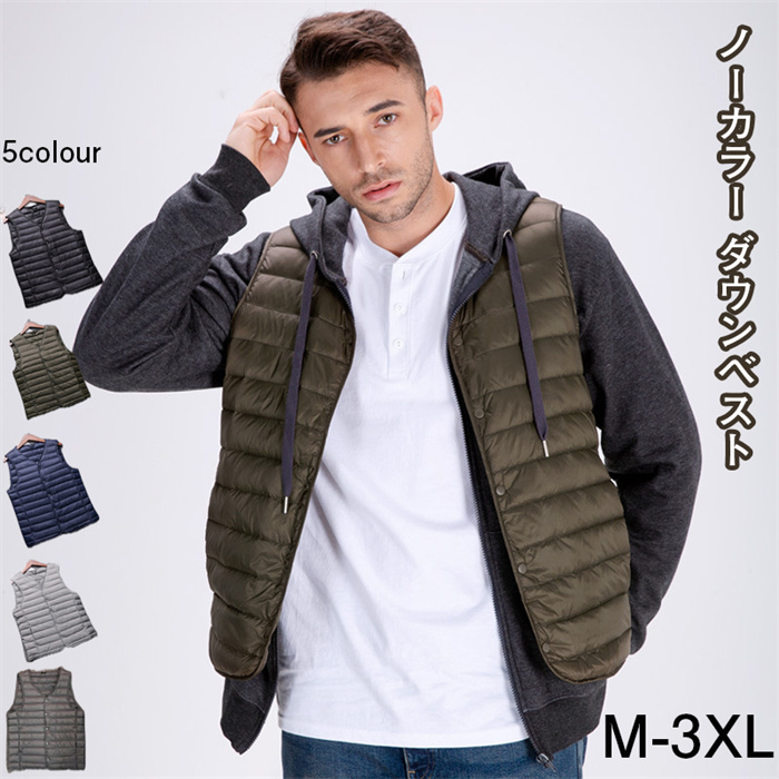 ダウンベスト メンズ 超軽量 ノーカラー 暖かい ウルトラライト インナー ベスト おしゃれ カジュアル 登山 通勤 旅行 春秋冬 M-3XL