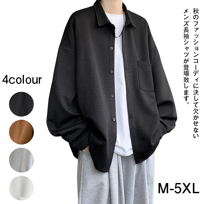 シャツ メンズ 秋 長袖 カジュアル ゆったり 無地 おしゃれ 大きいサイズ ゆったり おしゃれ 柔らかい 人気 トップス メンズ 春 秋 冬 服 黒 白 ライドグレー コーヒー色 M-5XL