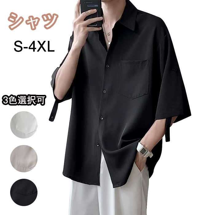 シャツ メンズ 七分袖 折り返し 半袖 夏服 ファッション ボタンアップ シャツ 大きいサイズ メンズ 無地 柔らかい ワイシャツ カジュアル 春夏秋 人気