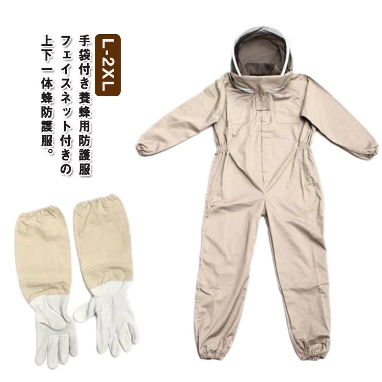 養蜂用蜂防護服 フェイスネット付き 作業着 防護服 スズメ蜂 つなぎ服 一体式 上下服 ハチ防護服 長袖 カバーオール 作業服 害虫駆除 作業服 L 保護装備 ガーデニング 虫さされ防止 虫よけ 養蜂