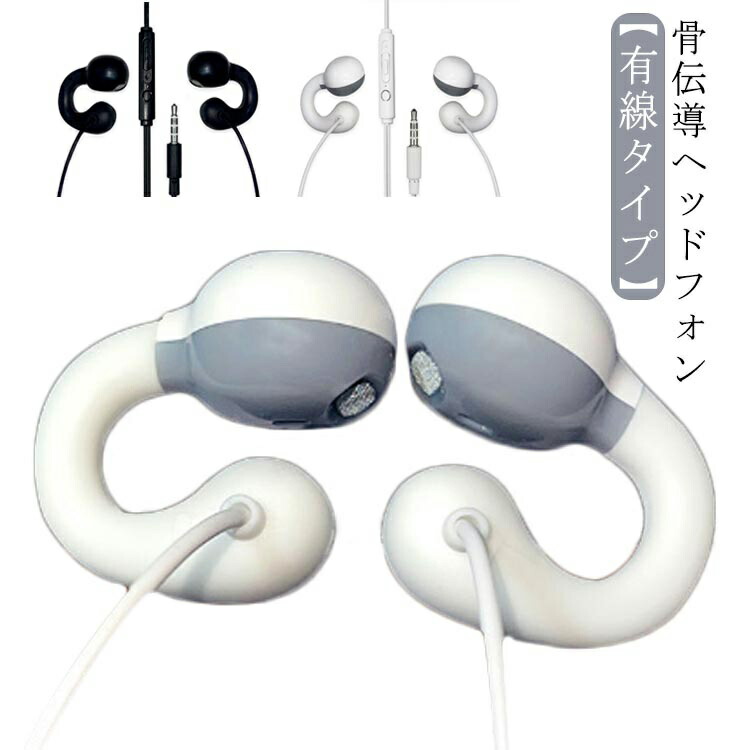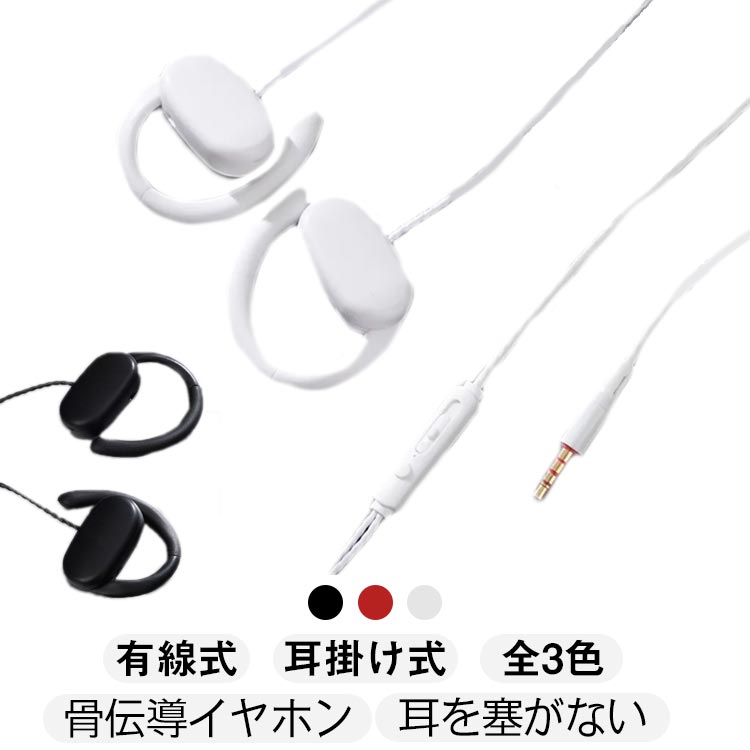 外音取り込み 骨伝導イヤホン 3.5mm 有線イヤホン 耳をふさがず 耳掛けイヤホン マイク付き 骨伝導振動 耳が痛くならない