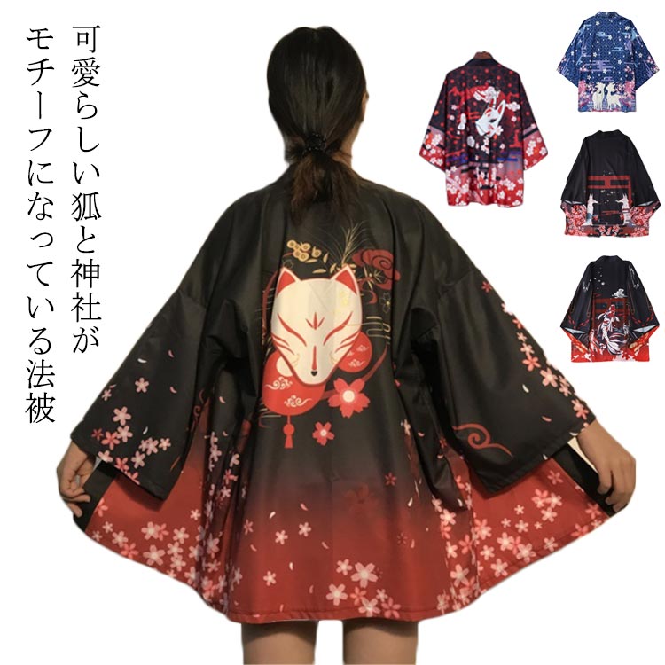 浴衣 はっぴ ハッピ 和装 寺 ハッピ 和柄 カーディガン 半纏 大人 着物 祭り 踊り 狐 天狐 夏祭り 神社 法被