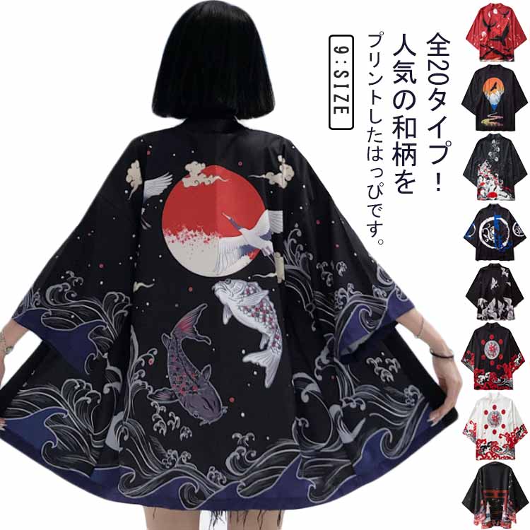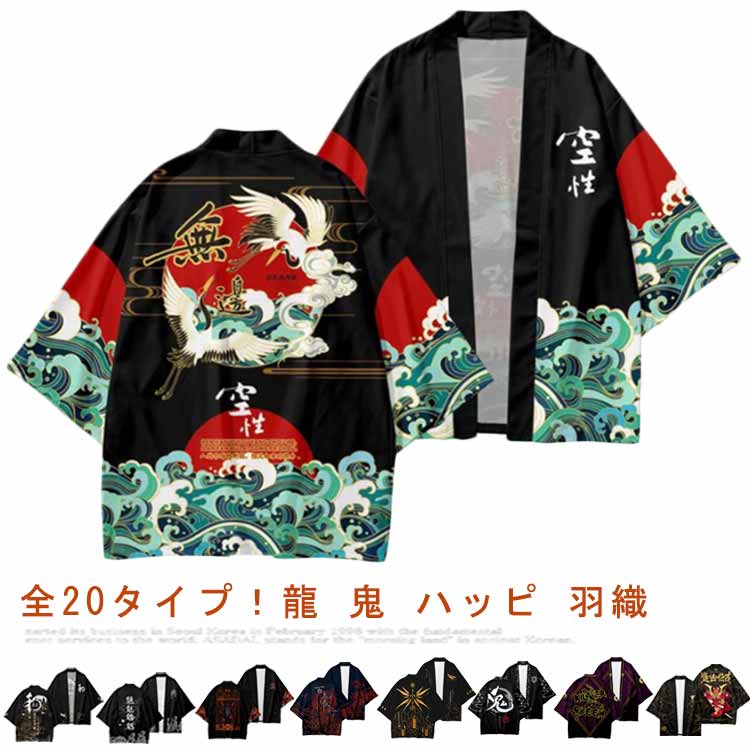 レディース はっぷ 七分袖 お祭り 羽織り 和風 イベント トップス ハッピ 半纏 コスチューム 浴衣 おしゃれ 和柄 はんてん サマーカーディガン アウター ダンス コスプレ メンズ 和装 甚平 鶴