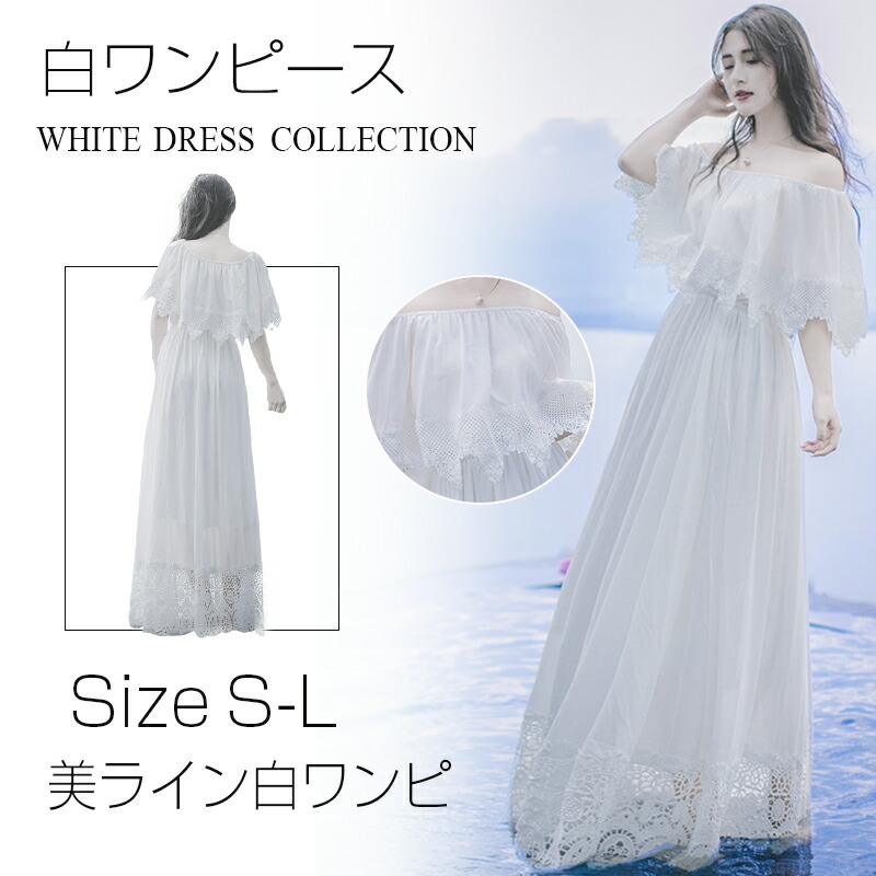 白ワンピース 海 プール ゴールデンウィーク 休暇 ビーチ リゾート 旅行 結婚式 披露宴 お呼ばれ 二次会 謝恩会 演奏会 発表会 パーティー 春 夏 秋 冬 優雅 パーティー