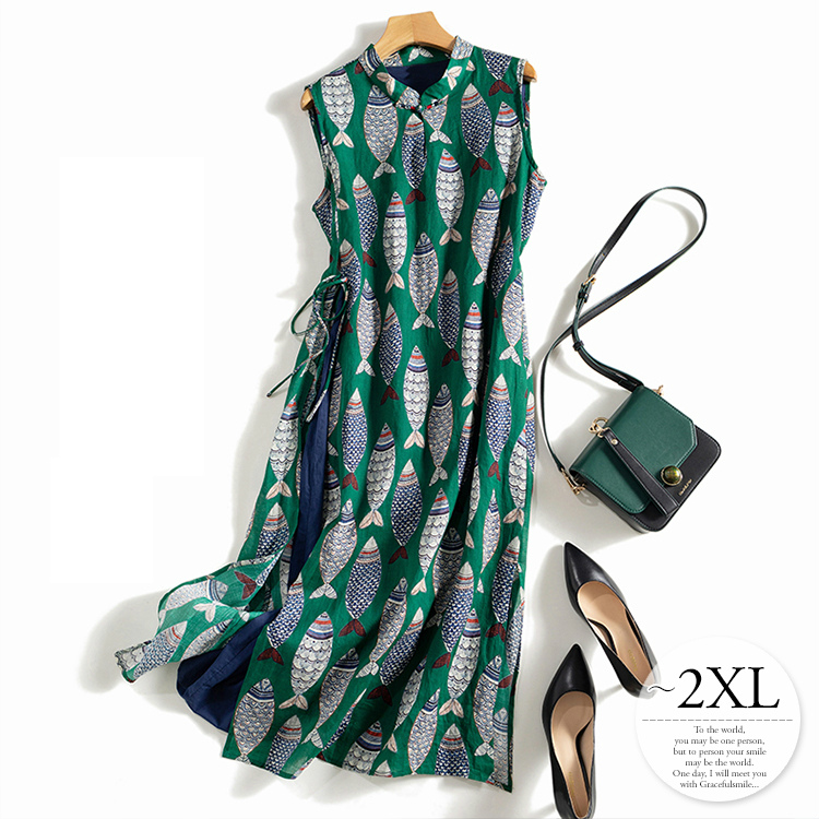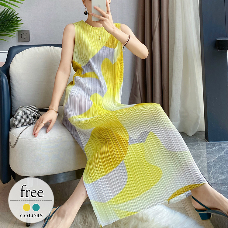 ワンピース ロング マキシ丈 ミモレ丈 レディース スリット 丸首 リゾート 涼し気 縦長効果 細見え エレガント イエロー グリーン ホワイト ネイビー 休日 魅力的 ママ ベーシック お洒落 おし