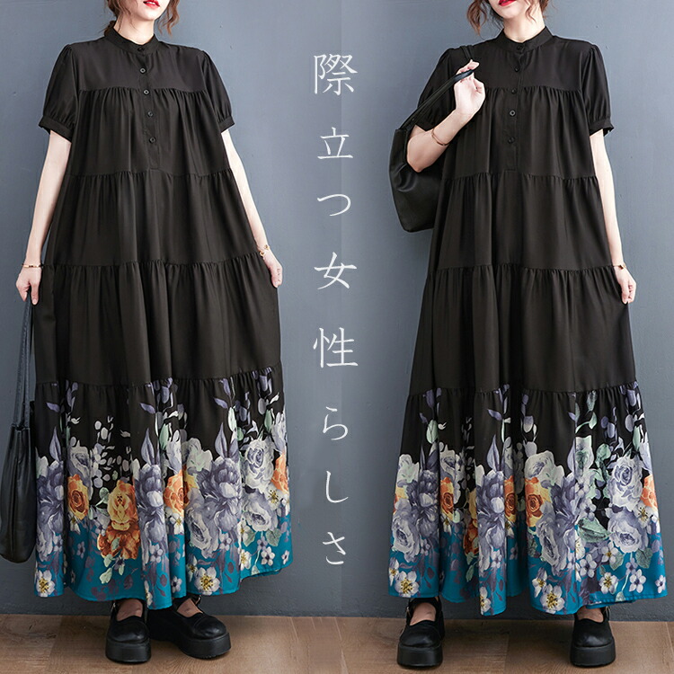 一枚で女性らしさ際立つワンピースゆったりシルエットで体型カバーしながらおしゃれも楽しめます♪レディースファッション ワンピース