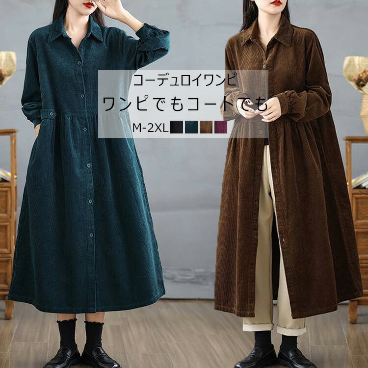 スプリングコート 春服 秋服 ロングコート 長袖コート スプリングコート ワンピース ゆったり 大人 着痩せ 羽織り 体型カバー 30代 40代 50代