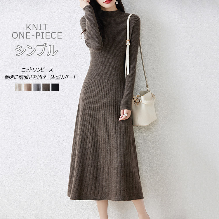 プチハイネックニットワンピース、膝丈ニットワンピ かわいいシルエットがキレイで、いろんなシーンで使える1枚~チクチクせず、着心地が良い