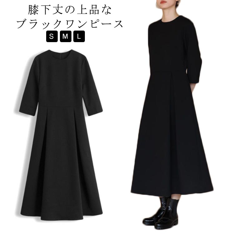 S M L ブラックワンピース フォーマル 5分袖 上品 ブラックワンピースレディースファッション ワンピース