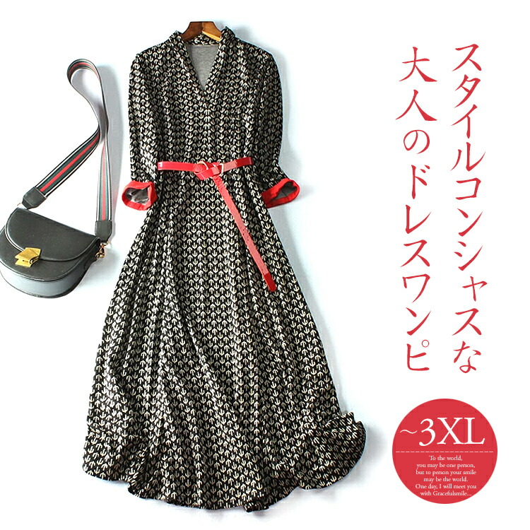 ワンピース ロング マキシ丈 きれいめ 大人かわいい レディース 大きいサイズ 長袖 きれいめ 30代 40代 50代 60代 ブラック 黒 レッド サボテン総柄 パーティー 食事会 同窓会 二次会