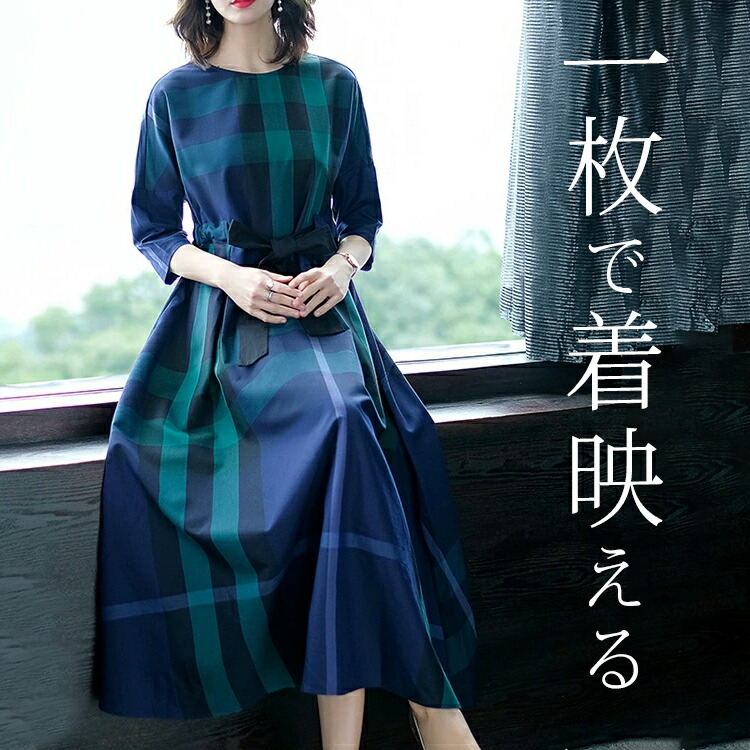 クラシカルな大人レディへ 後ろのチェック柄が違った表情を魅せる♪カジュアルすぎずカチッとしすぎない絶妙な憧れワンピスタイル