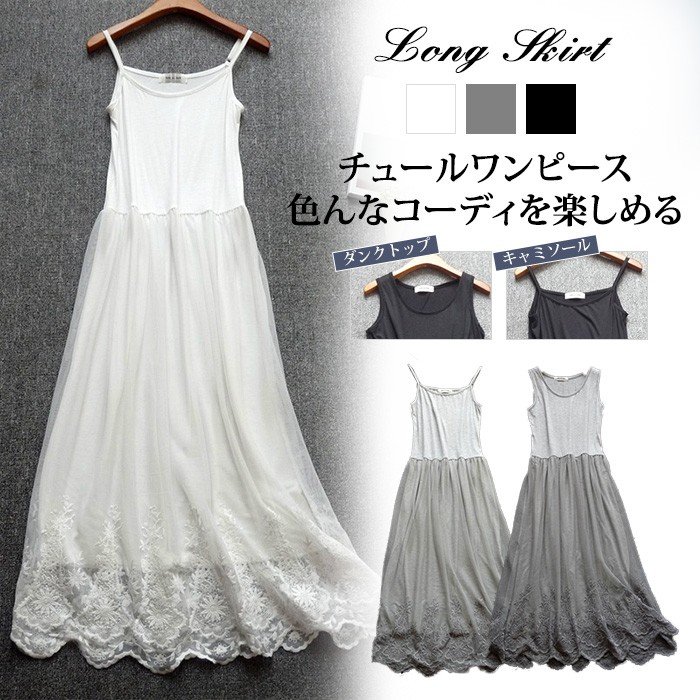 ロングワンピース レディース インナー チュールレース タンクトップワンピース キャミソールワンピ 2タイプ キャミソールワンピース