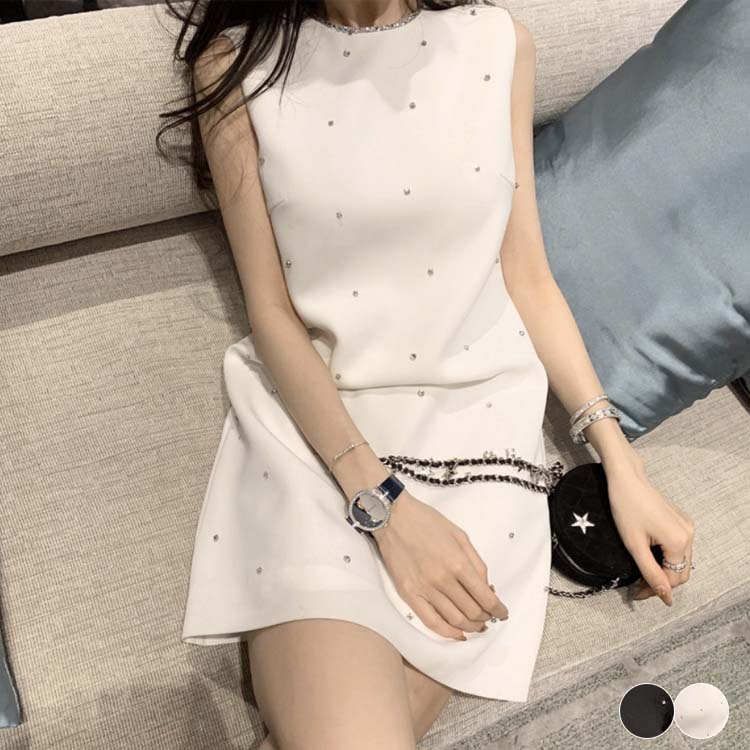 ドレス レディース ワンピース ミニドレス ショート丈 パーティードレス キャバ お水 キャバドレス ノースリーブ ビジュー Aライン 韓国