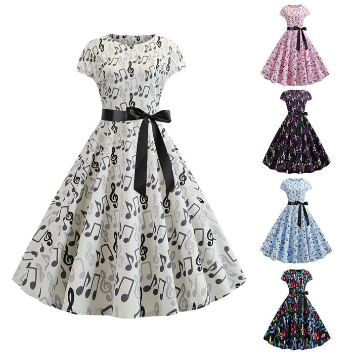 総柄 レディース 5色 S-2XL レトロワンピース 結婚式 短袖 ロカビリー 着痩せ ハイウエスト 50年代